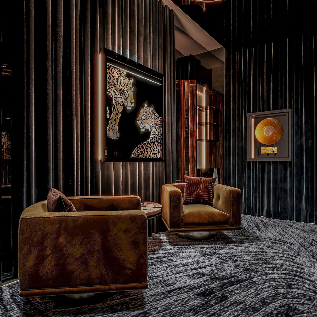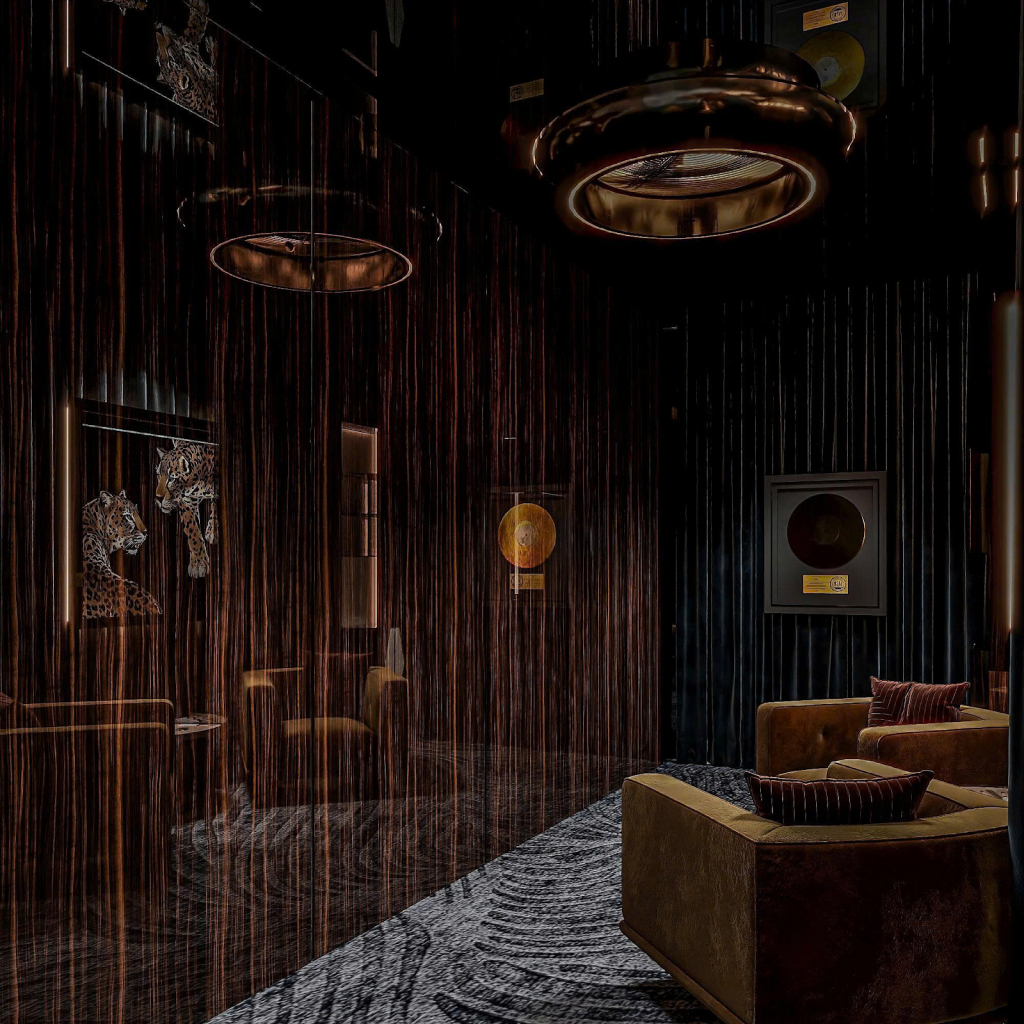 Bước vào Cigar Lounge, người ta lập tức cảm nhận được sự chuyển đổi về không khí – từ ồn ào của bên ngoài sang một vùng tĩnh lặng, sang trọng và ấm cúng. Thiết kế ánh sáng là điểm nhấn tinh tế: những dải đèn âm được giấu khéo léo, tạo nên hiệu ứng “ánh sáng đọng” trên bề mặt gỗ và da, giúp không gian vừa có chiều sâu vừa tôn lên vẻ đẳng cấp của vật liệu.