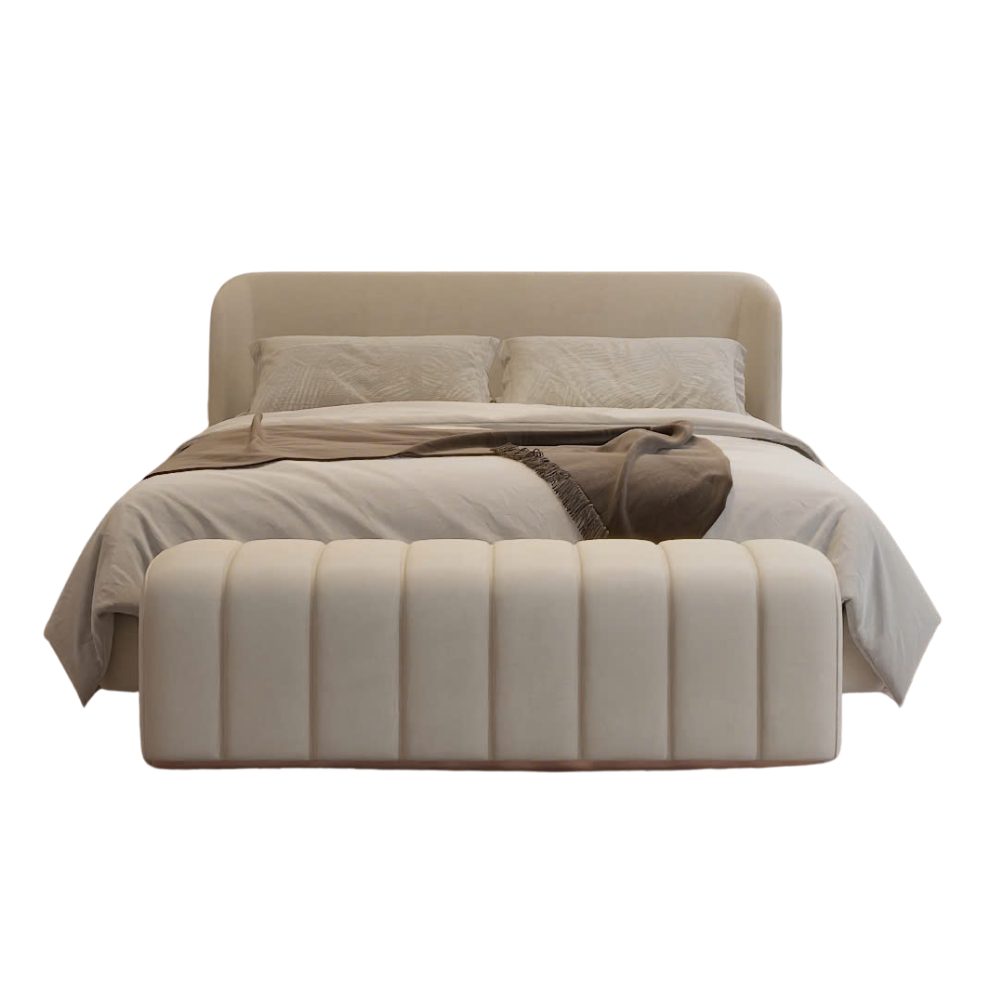 Thiết kế đầu giường bọc nỉ mềm mại, uốn cong duyên dáng tạo nên vẻ ngoài thanh lịch, đồng thời mang lại sự thoải mái tối đa. Từng đường nét được chăm chút tỉ mỉ, kết hợp hài hòa giữa thẩm mỹ và công năng, biến Dream trở thành lựa chọn hoàn hảo cho không gian nghỉ ngơi đẳng cấp.